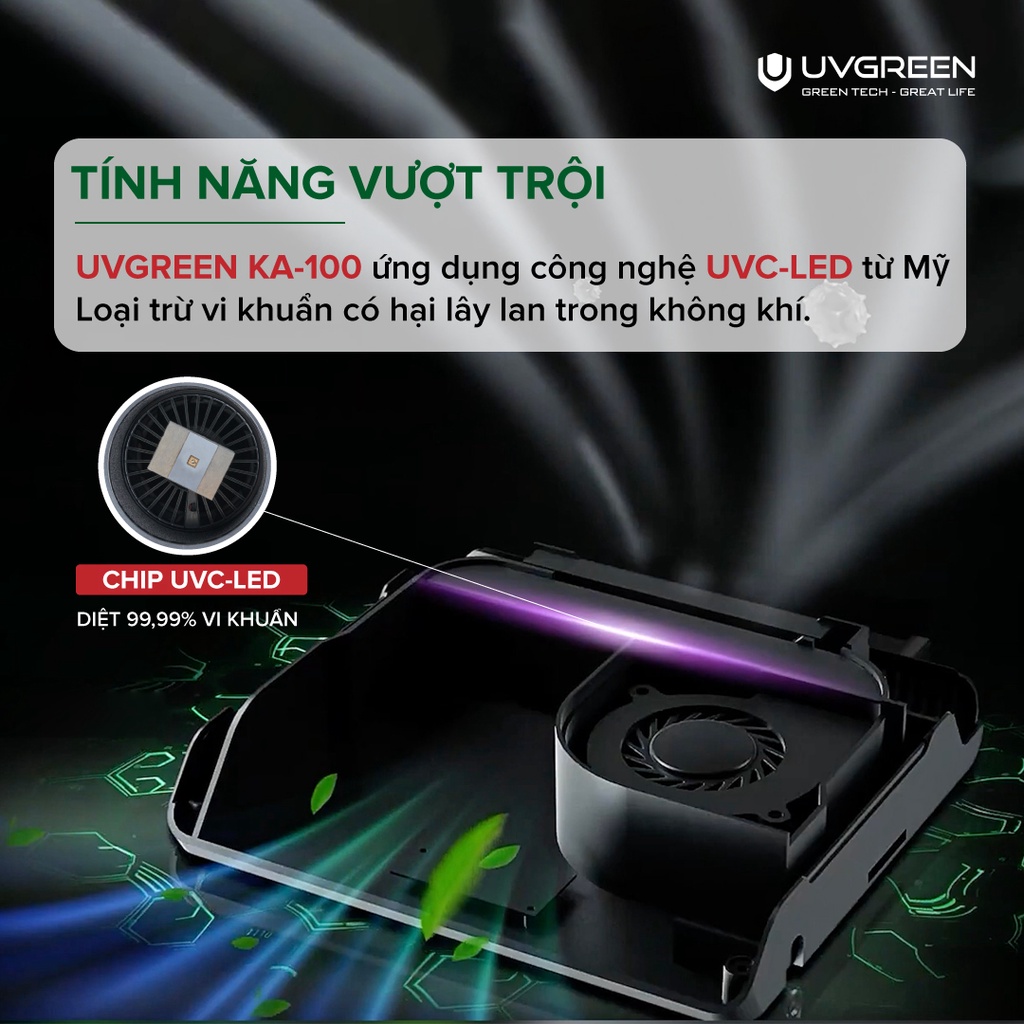Máy Lọc Không Khí Ô Tô, Khử Mùi, Diệt Khuẩn UVGREEN KA100 - Công Nghệ UVC LED Từ Mỹ, Lõi Lọc Than Hoạt Tính Lọc Bụi Mịn, Loại Bỏ Mùi - Bảo Hành 12 Tháng
