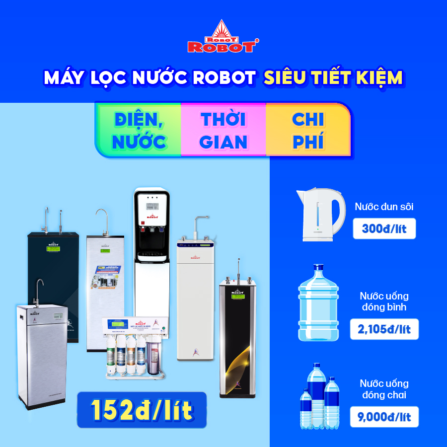 • Công nghệ RMC – LCD độc quyền, biết được chất lượng nước trước & sau lọc   Bộ vi mạch RMC-LCD thông minh thiết kế phát minh của ROBOT, mọi chi tiết vận hành máy được hiển thị trên màn hình LCD, cảnh báo mọi rủi ro cho người sử dụng   Tuổi thọ lõi lọc được tính theo lưu lượng nước sử dụng, không tính theo thời gian ghim điện như các máy thông thường, tiết kiệm tối đa chi phí thay lõi lọc