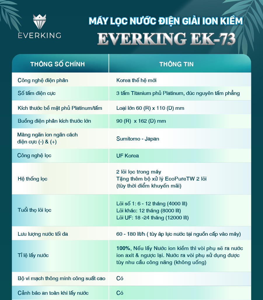 ✨Máy Lọc Nước Điện Giải iON Kiềm EVERKING EK-73 - Hàng Chính Hãng