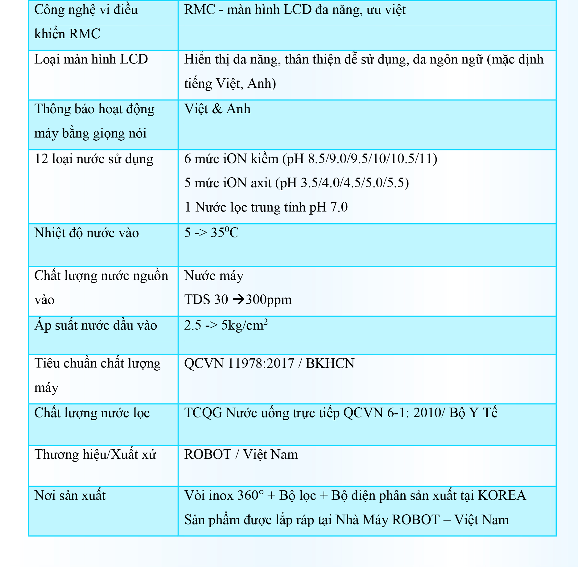 - Hệ thống điều khiển cảm ứng trên mặt phủ kính với màn hình LCD tinh tế +++ Với mong muốn nhiều gia đình Việt có thể sử dụng nước điện giải iON kiềm với chi phí hợp lý để bảo vệ sức khỏe, sắc đẹp & nâng cao chất lượng cuộc sống, ROBOT mang đến sản phẩm “Chất lượng Quốc tế - Giá thành Việt Nam”, phù hợp với mức sống của nhiều người. Tiết kiệm cho người tiêu dùng đến hơn một nửa chí phí so với máy nhập khẩu chỉ từ 30 50%, nhưng sở hữu nhiều ưu điểm, tính năng vượt trội, chất lượng cao.
