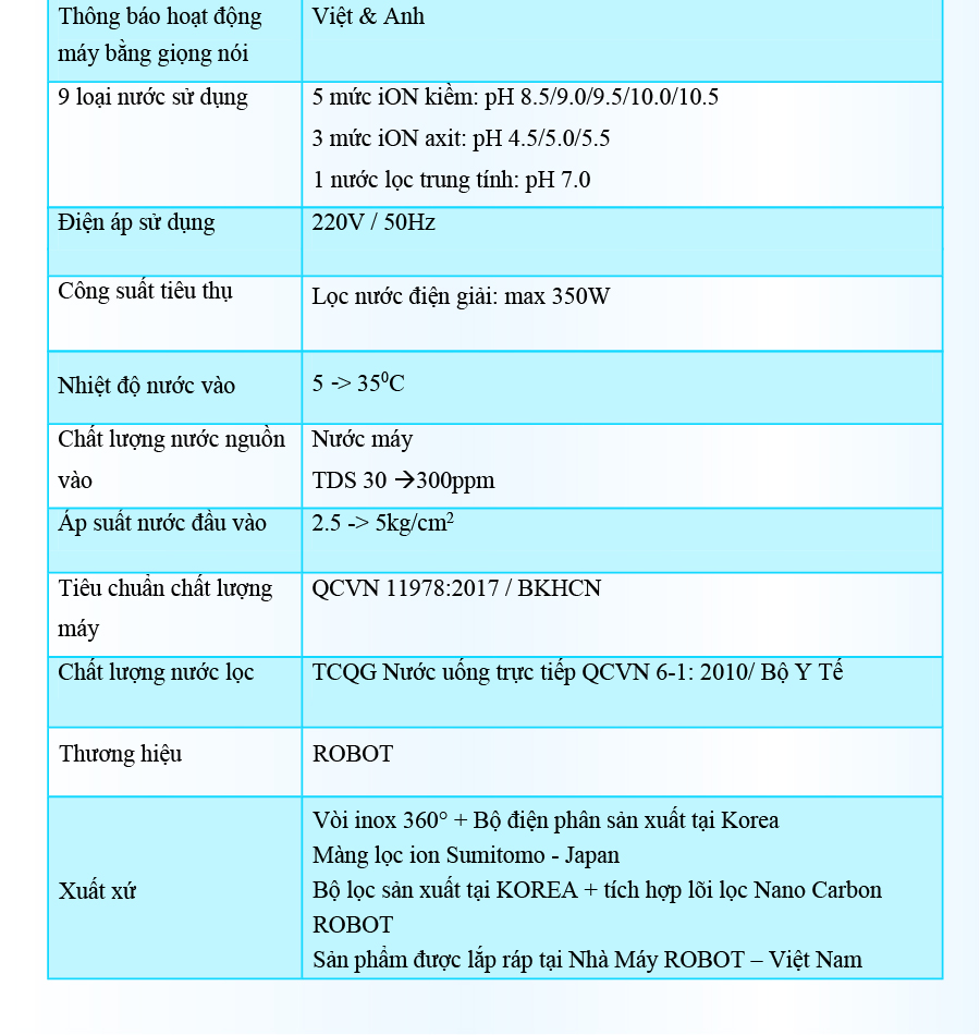 - Với mong muốn nhiều gia đình Việt có thể sử dụng nước điện giải iON kiềm với chi phí hợp lý để bảo vệ sức khỏe, sắc đẹp & nâng cao chất lượng cuộc sống, ROBOT mang đến sản phẩm “Chất lượng Quốc tế - Giá thành Việt Nam”, phù hợp với mức sống của nhiều người. Tiết kiệm cho người tiêu dùng đến hơn một nửa chí phí so với máy nhập khẩu chỉ từ 30 – 50%, nhưng sở hữu nhiều ưu điểm, tính năng vượt trội, chất lượng cao.