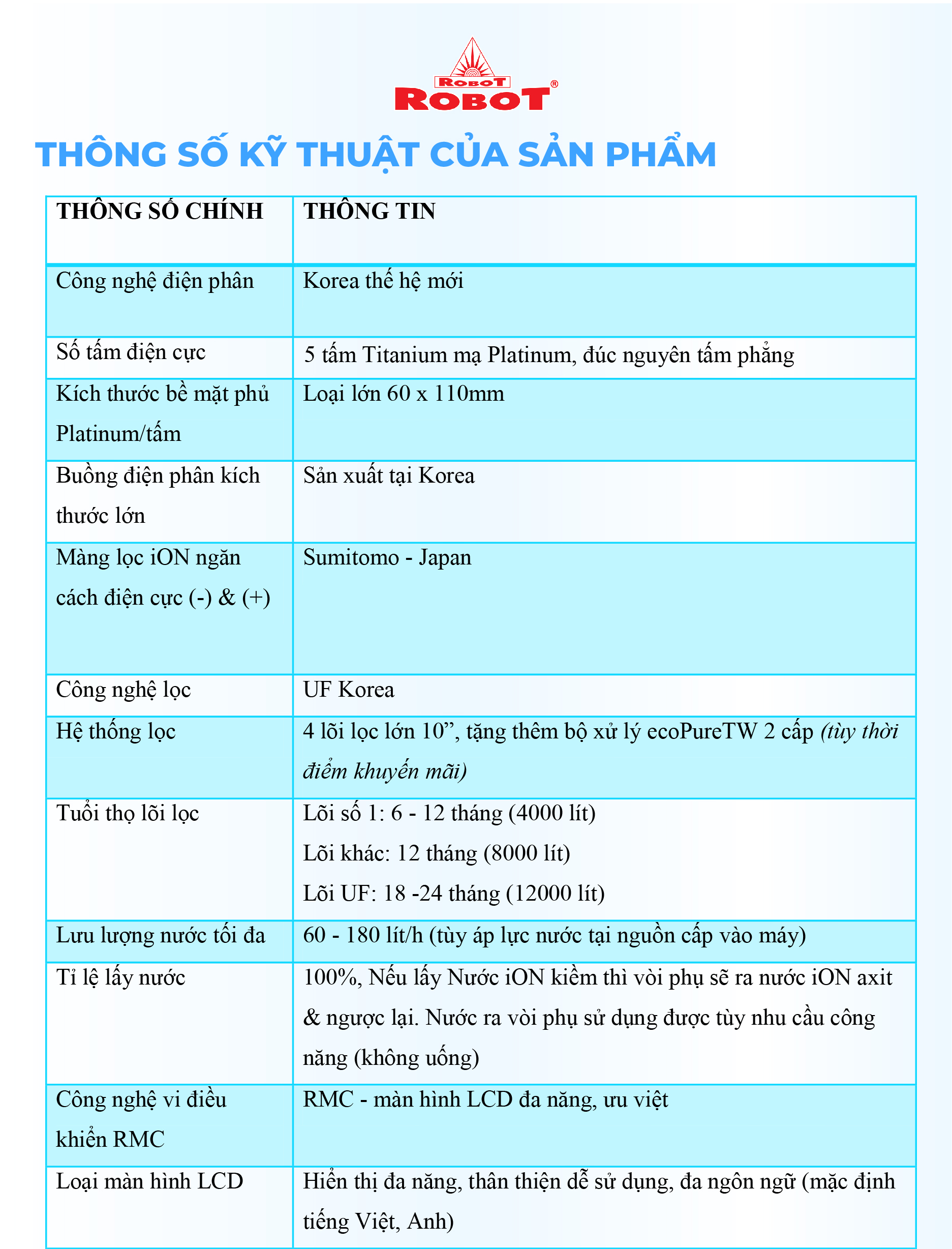 - Máy lọc nước điện giải iON kiềm ROBOT ionPrince 59,