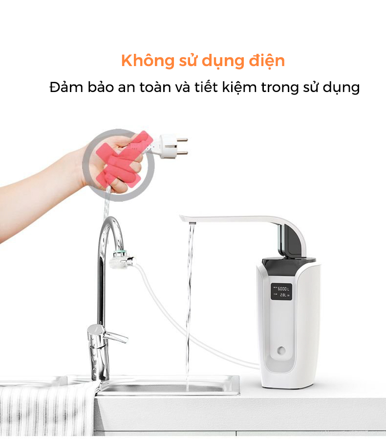 - CƠ CHẾ LỌC KHÉP KÍN AN TOÀN VÀ VỆ SINH Máy lọc không có bình chứa nước thải, đảm bảo cho nguồn nước không bị đong rong rêu hay vi khuẩn tích tụ sau thời gian dài sử dụng mà không được vệ sinh thường xuyên, tránh gây ảnh hưởng đến sức khỏe của người tiêu dùng.