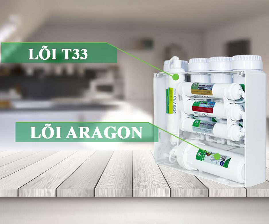- Lõi lọc số 4 T33: Giúp tạo vị nước, cân bằng độ khoáng chất trong nước, tăng cường xử lý độ cứng và làm mềm nước.