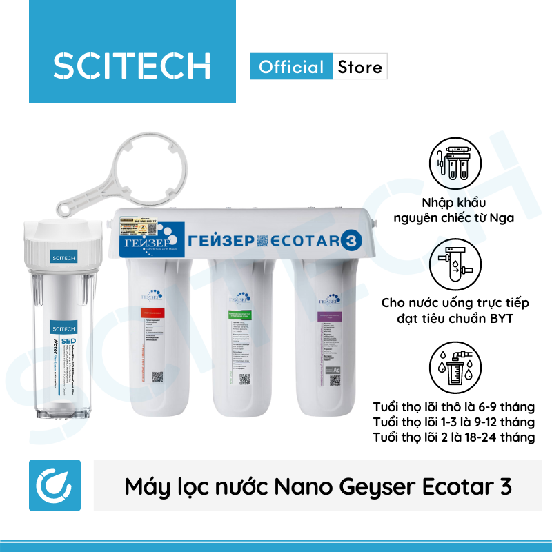 ✨Máy lọc nước Nano Geyser Ecotar 3 kèm bộ đơn lọc thô 10 inch by Scitech - Hàng chính hãng