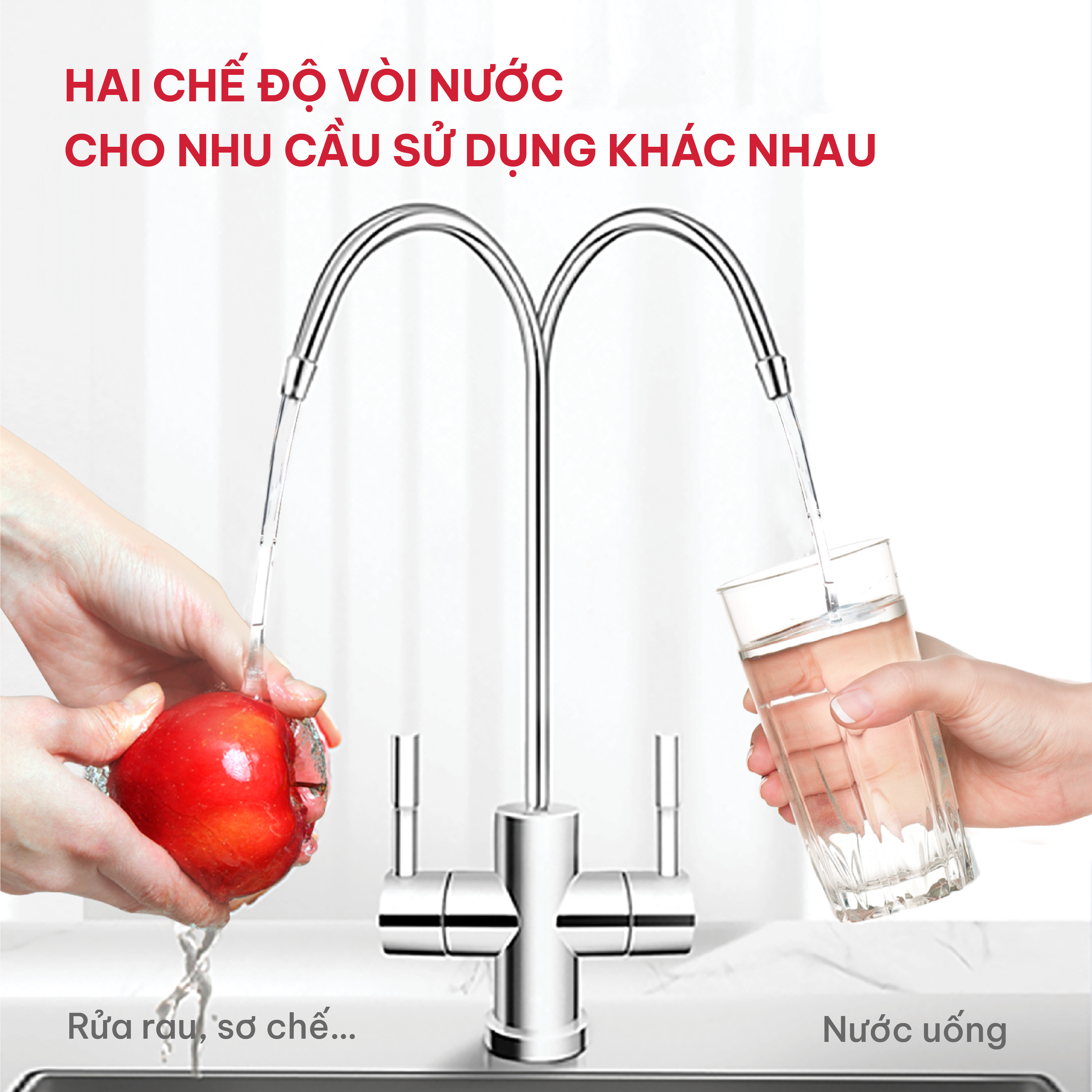 ĐẶC ĐIỂM NỔI BẬT - 2 chế độ nước tinh khiết – nước Hydrogen đa dạng nhu cầu - Thiết kế SLIM nhỏ gọn, hiện đại - Điều khiển van cơ 2 ngả bền bỉ,
