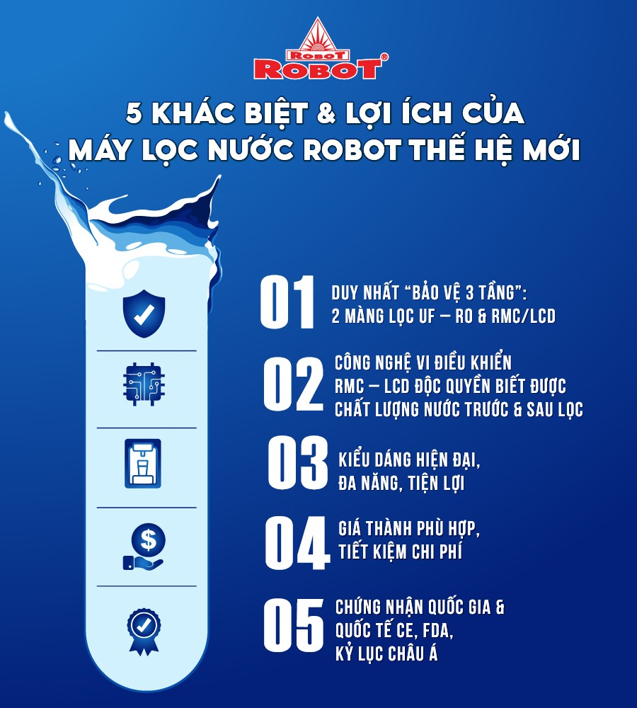 Máy lọc nước Robot - Tích hợp công nghệ lọc tiên tiến R.O + UF + Hydrogen