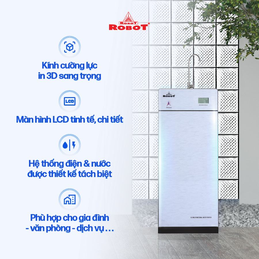 • Máy lọc nước ROBOT LUX PRO 2410W, được thiết kế hiện đại, sang trọng, phù hợp với nhiều phong cách nội thất khác nhau.