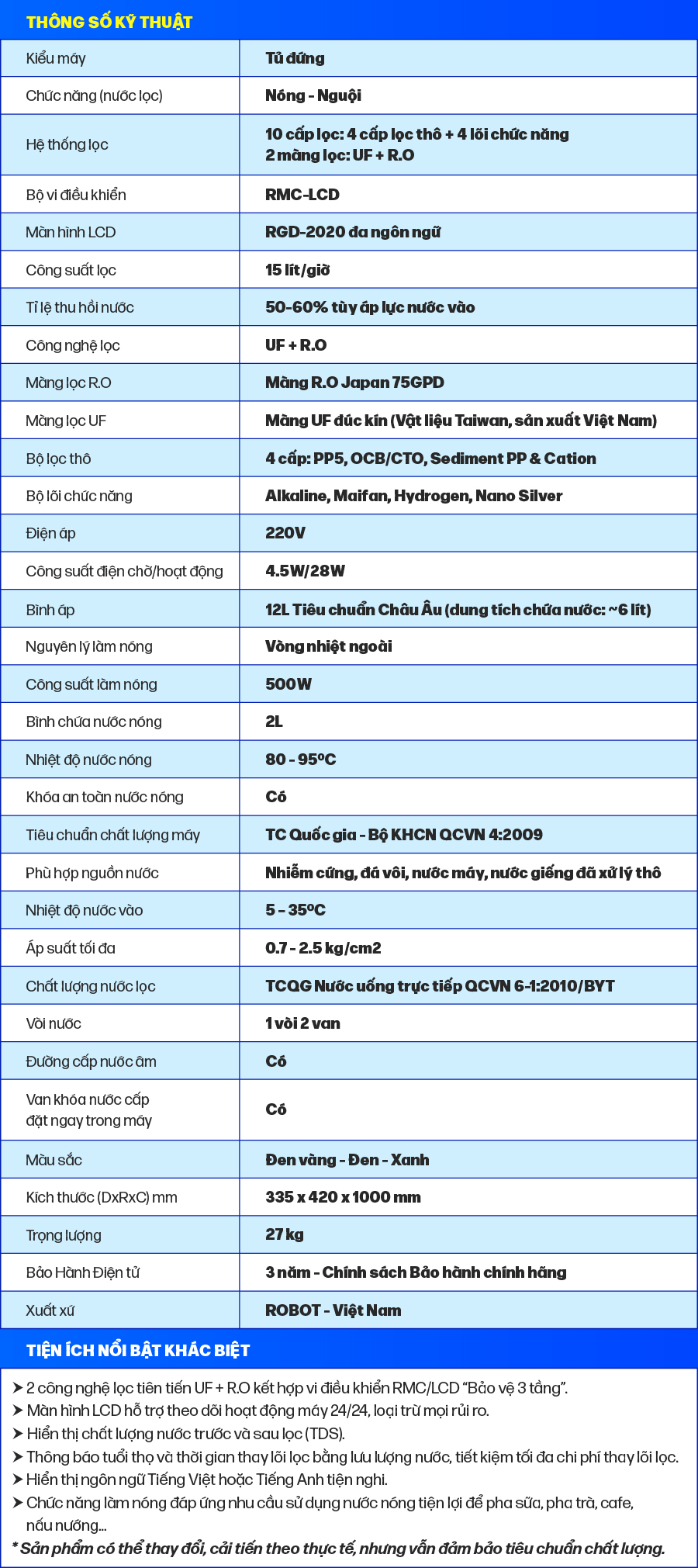 MÁY LỌC NƯỚC NÓNG NGUỘI ROBOT SPRING PRO 410GH-URNHỮNG KHÁC BIỆT ĐỘC ĐÁO & LỢI ÍCH CỦA MÁY LỌC NƯỚC ROBOT THẾ HỆ MỚI   Máy lọc nước “Bảo vệ 3 tầng” UF + RO - RMC/LCD duy nhất thị trường-...