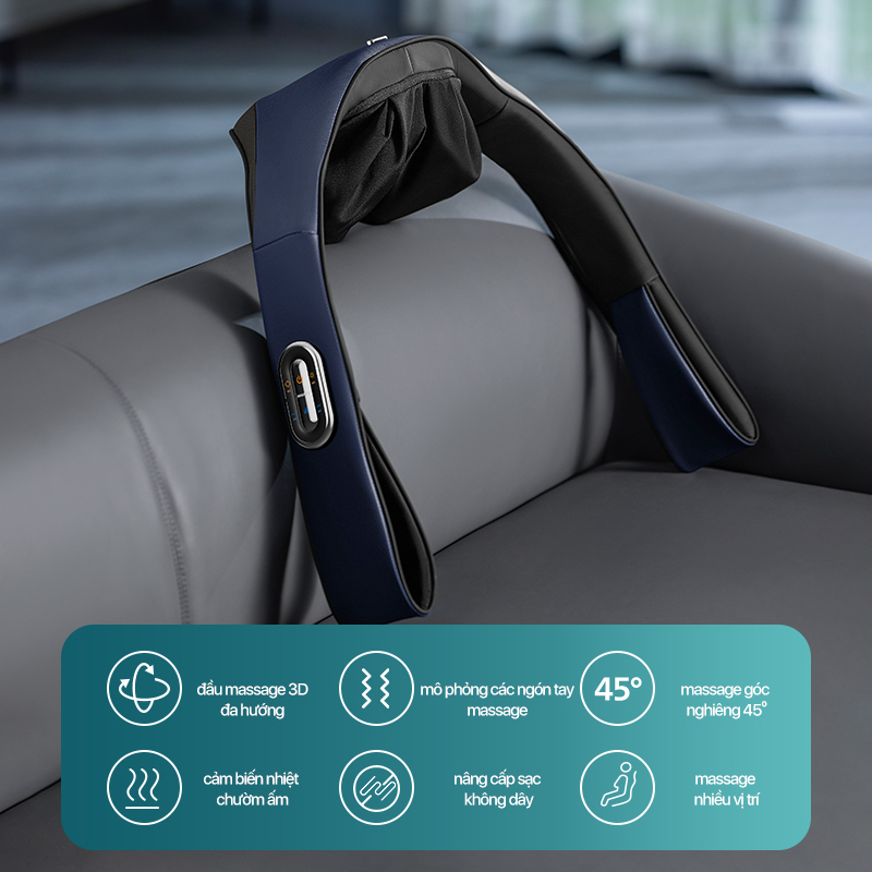 Massage nhẹ nhàng, thư giãn các vùng cơ chịu nhiều áp lực Thiết kế di động, lý tưởng để mang đi du lịch Có thể điều chỉnh tiện lợi với bảng điều khiển tích hợp