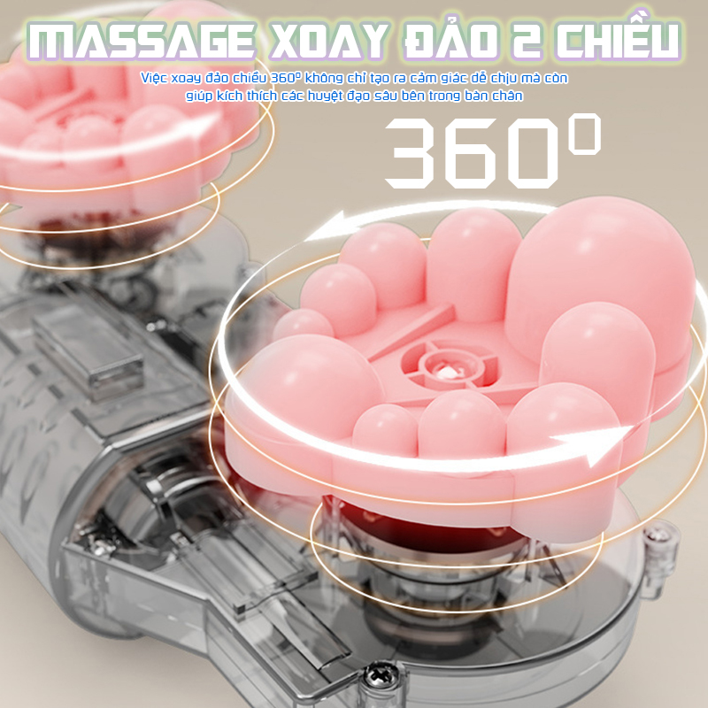 Tính năng xoay 2 chiều này đặc biệt hiệu quả trong việc giúp cơ chân giãn mềm, giảm căng cứng sau khi vận động, làm việc hoặc đứng lâu trong ngày.