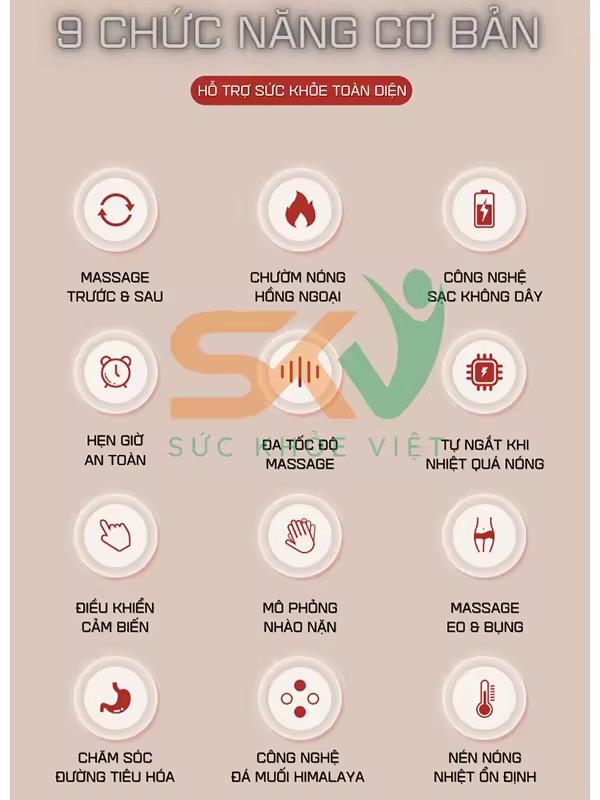 Các MODEL đều có 2 động cơ rung, 20 bi xoay, chức năng đảo chiều, tăng/giảm tốc độ xoay, tăng/giảm nhiệt hồng ngoại, điều chỉnh cường độ rung.Tuy nhiên mỗi dòng gối sẽ có điểm