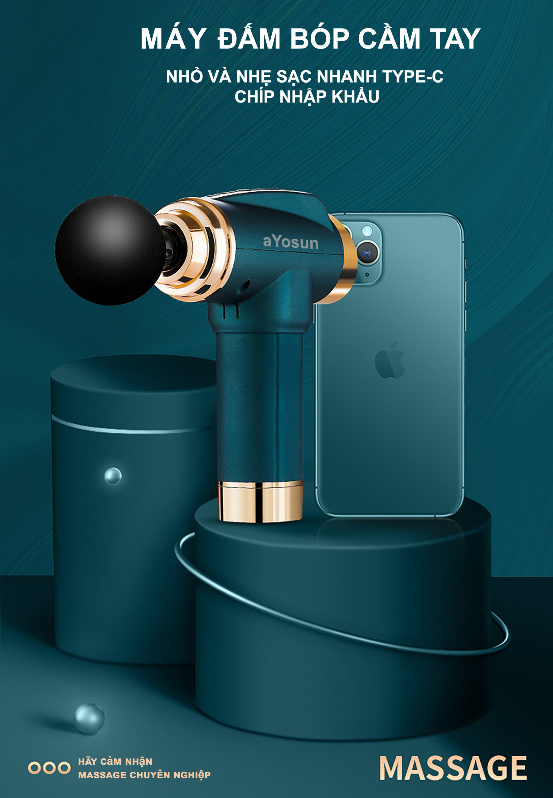 ✨Máy Massage cầm tay 30 cấp độ cao cấp aYosun JENU – T9 ( Hàng Chính Hãng )
