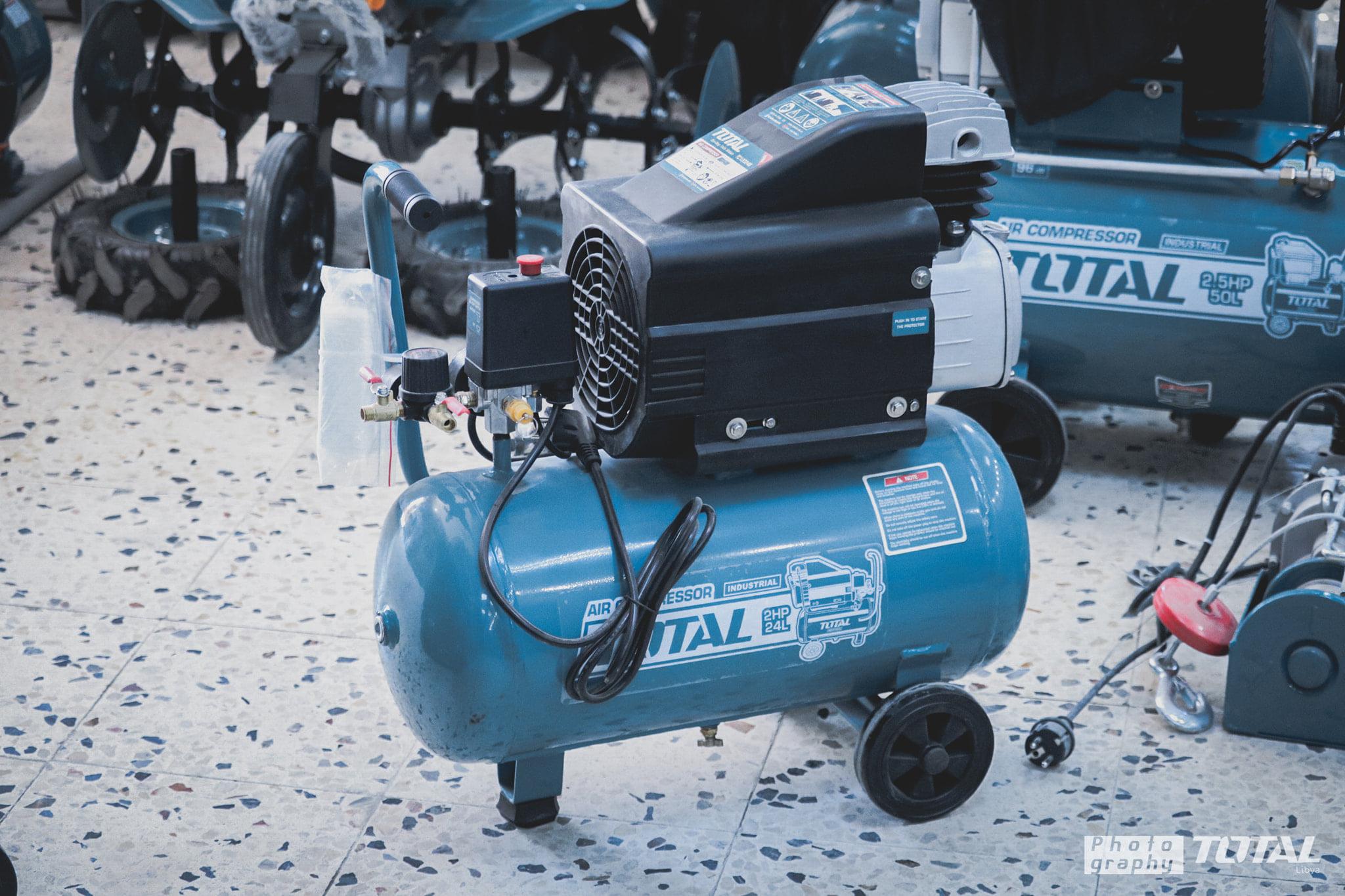 •Máy nén khí Total TC120246 được dùng để bơm hơi xe, bắn ốc vít trong các tiệm sửa chữa xe máy.