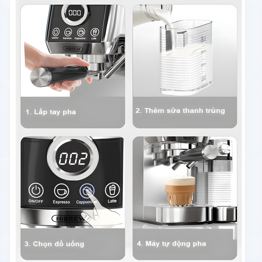 Máy pha cà phê bán tự động Espresso, Cappuccino, Latte thương hiệu Mỹ cao cấp HiBREW H10B - Hàng Nhập Khẩu Tiếp nối thành công phiên bản Máy pha cà phê espresso bán tự động