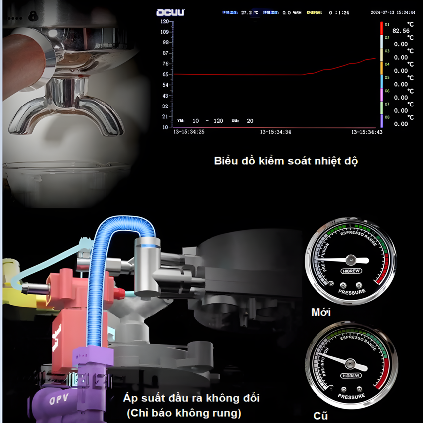 - Linh hoạt kiểm soát nhiệt độ pha chiết suất cà phê 90~95ºC