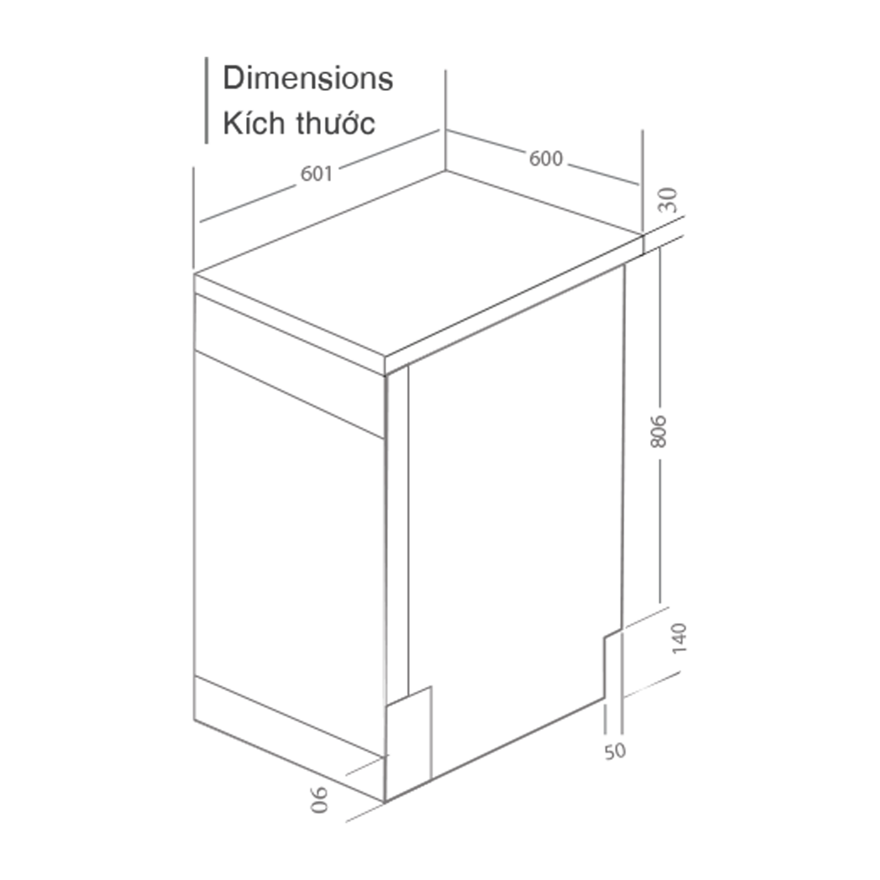 • Máy rửa chén độc lập • Thân inox màu đen cao cấp • 3 dàn rửa tiện lợi • Sức chứa 17 bộ đồ ăn Châu Âu • 8 Chương trình rửa tích hợp