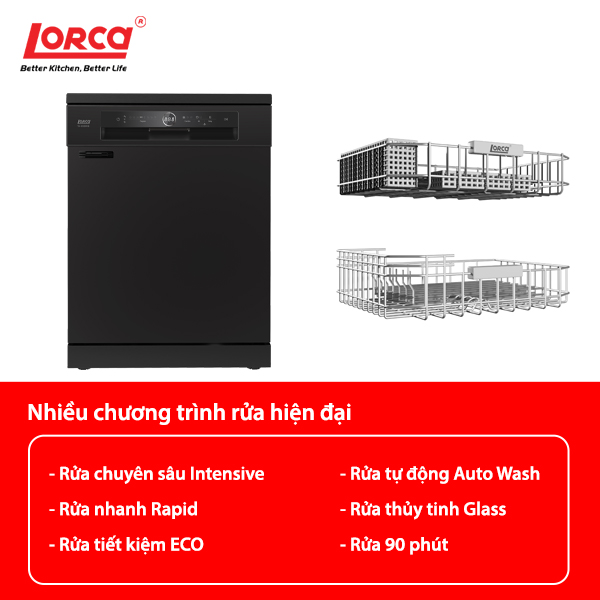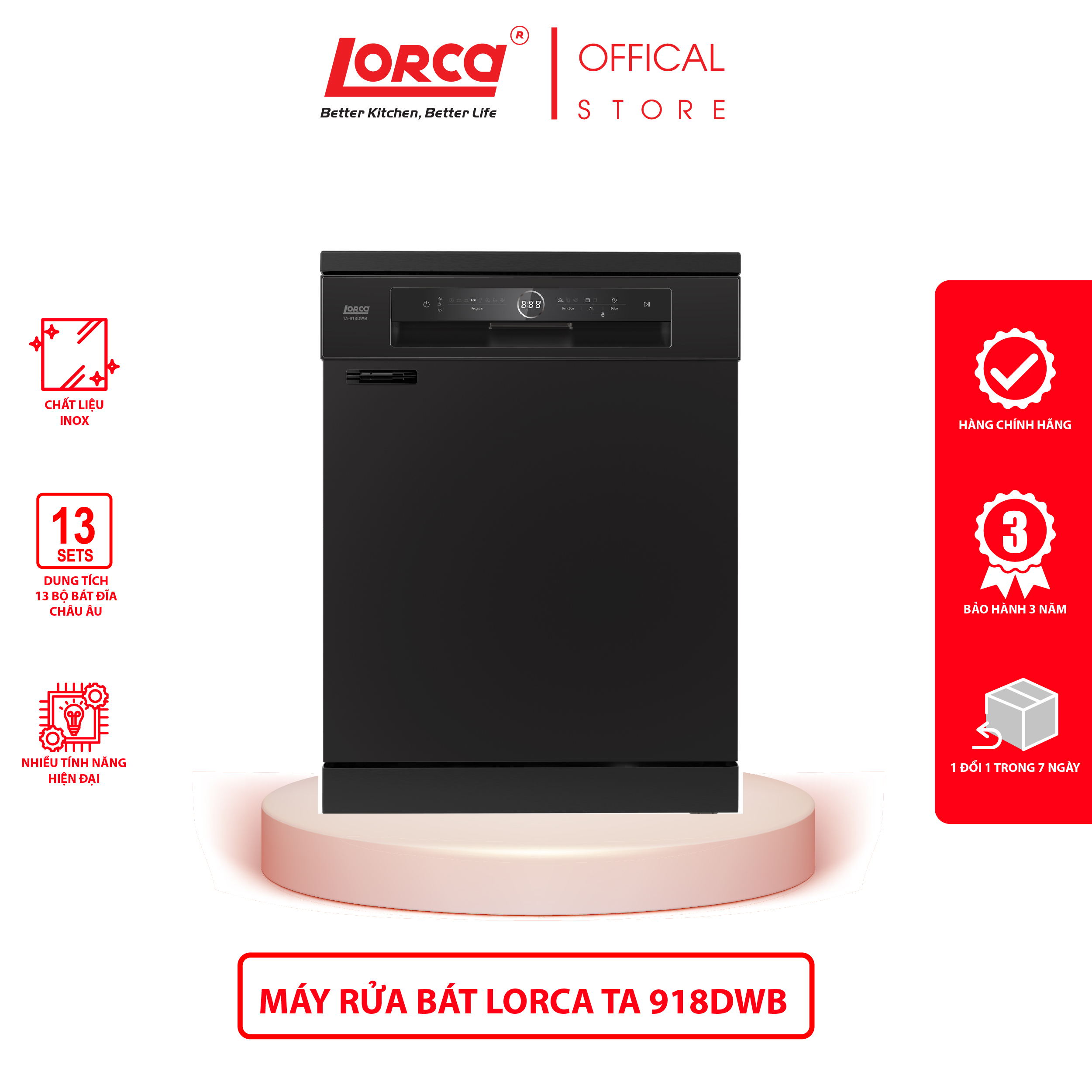 - Bạn đang tìm kiếm một chiếc máy rửa bát hiệu suất cao, thiết kế sang trọng và tính năng vượt trội? Máy rửa bát 13 bộ LORCA TA 918DWB chính là sự lựa chọn lý tưởng cho gia đình bạn. Với khả năng rửa sạch đến 13 bộ bát đĩa châu Âu cùng lúc, chiếc máy này không chỉ tiết kiệm thời gian mà còn mang lại sự tiện lợi tối đa. Đặc Điểm Nổi Bật của Máy Rửa Bát LORCA TA 918DWB: