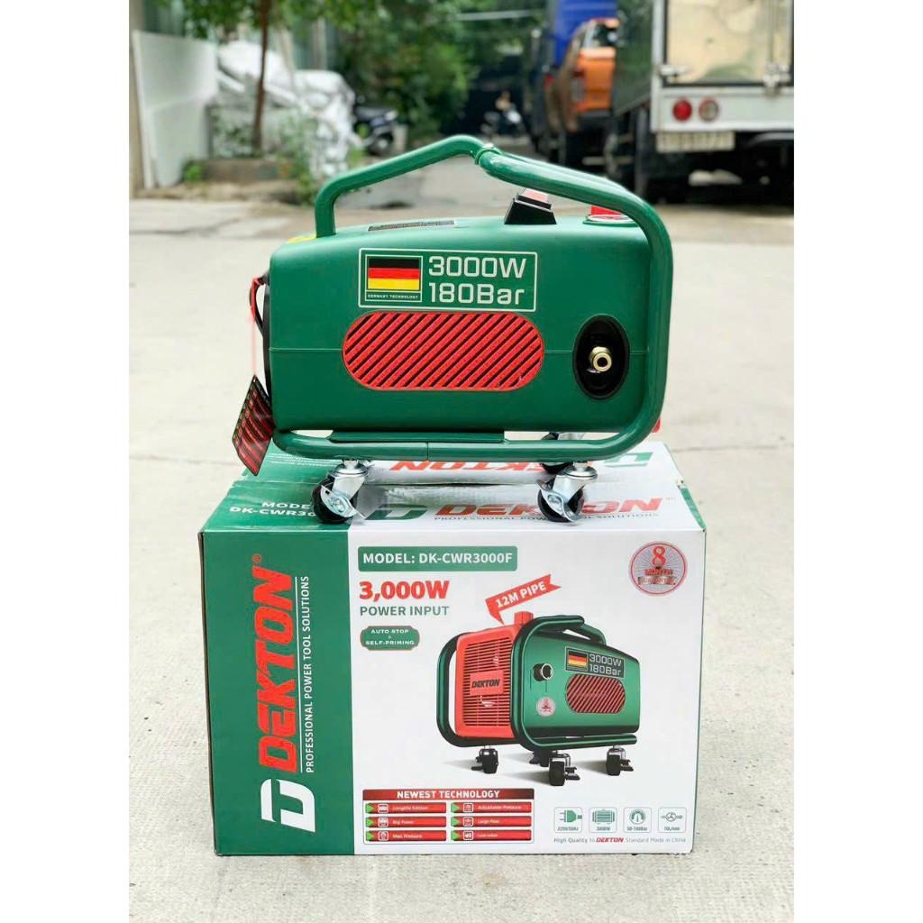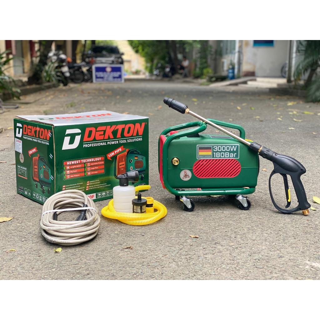 Mua tại TiktokMáy Rửa Xe Dekton DK-CWR3000F - Công Suất 3000W - Chỉnh Áp - Bánh Xe Đẩy ( Model mới nhất 2024) THÔNG SỐ KỸ THUẬT Model : DK-CWR3000F Thương Hiệu : Dekton Xuất xứ : Trung Quốc Công suất: 3000W Điện Áp : 220V Motor từ 100% cuốn bằng dây đồng Áp lực tối đa: 180 bar Áp lực hoạt động: 150 bar Lưu lượng nước: 10L/min Tự ngắt khi nhả cò : có Chỉnh áp : có Dây dẫn lõi kép 10mm Phụ kiện: