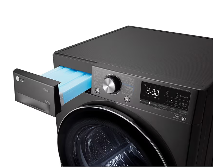 Máy Sấy Bơm Nhiệt LG Inverter 10.5 Kg DVHP50W cho hiệu suất đồng đều, chăm sóc bền vững Thiết kế tiện lợi, dung tích sấy lớn Máy Sấy Bơm Nhiệt LG Inverter 10.5 Kg DVHP50W