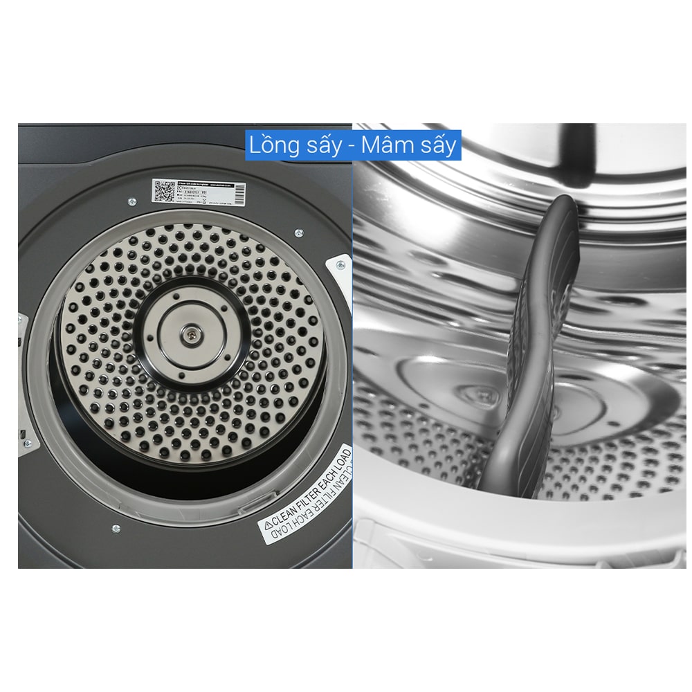 – Công nghệ sấy đảo chiều Reverse Tumbling: việc là ủi quần áo trở nên nhanh chóng và dễ dàng hơn nhờ lồng sấy chuyển động và đảo chiều liên tục