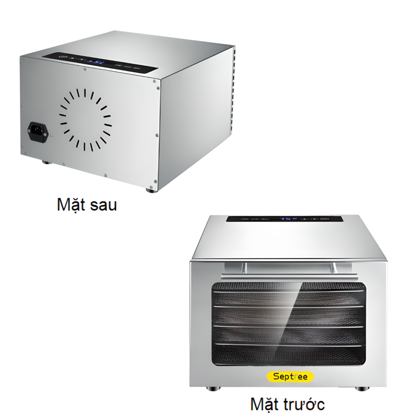 - Tất cả những thực phẩm có kích thước phù hợp đều sẽ là nguyên liệu lý tưởng của dòng máy sấy Septree DBC-05A. Không hề có sự kén chọn hay phân biệt thực phẩm được hoặc không được sấy, chỉ cần người dùng nắm bắt được nguyên lý hoạt động, điều chỉnh thời gian và nhiệt độ sấy thích hợp. Thông số kỹ thuật