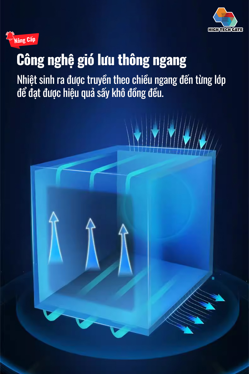Máy Sấy Thực Phẩm HTG ST06 Sấy Khô Hoa Quả, Trái Cây, Thịt Cá, Rau Củ Quả.. Tia UV Khử Khuẩn,12 Khay