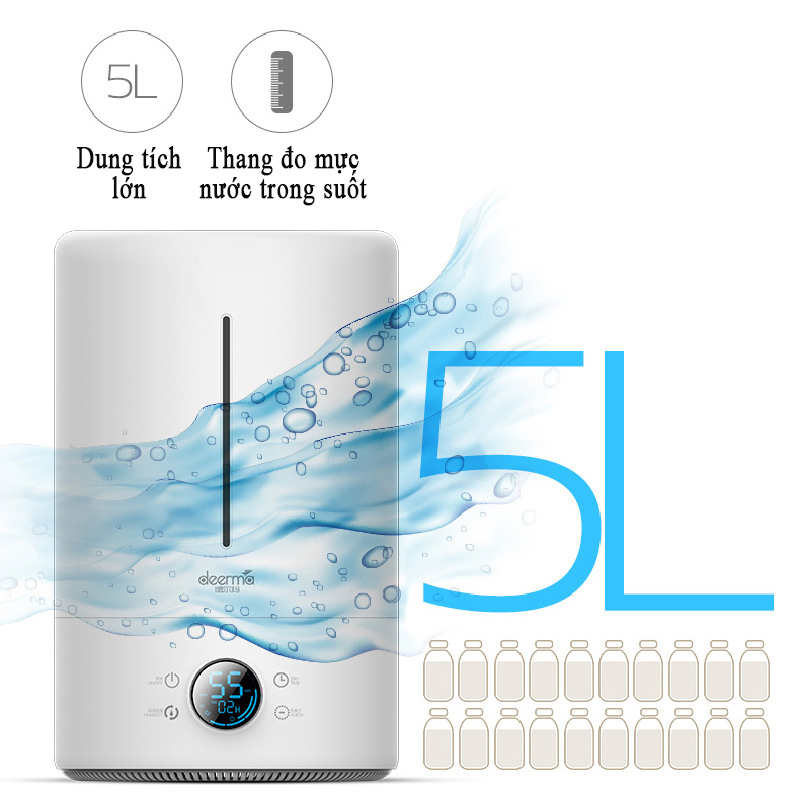 Với thiết kế dung tích lớn : 5 Lít, không phải nạp nước nhiều lần trong quá trình sử dụng.