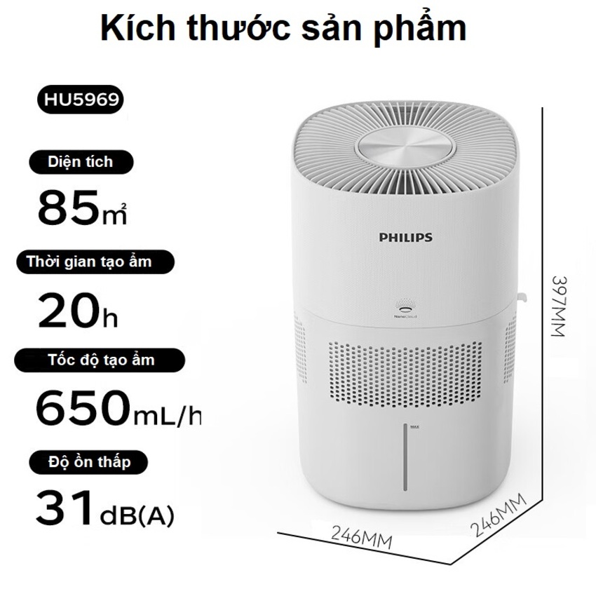 ✨Máy tạo độ ẩm công nghệ NanoCloud Philips HU5969 tia UV khử khuẩn - Dùng cho phòng diện tích 85m2 - Hàng nhập khẩu