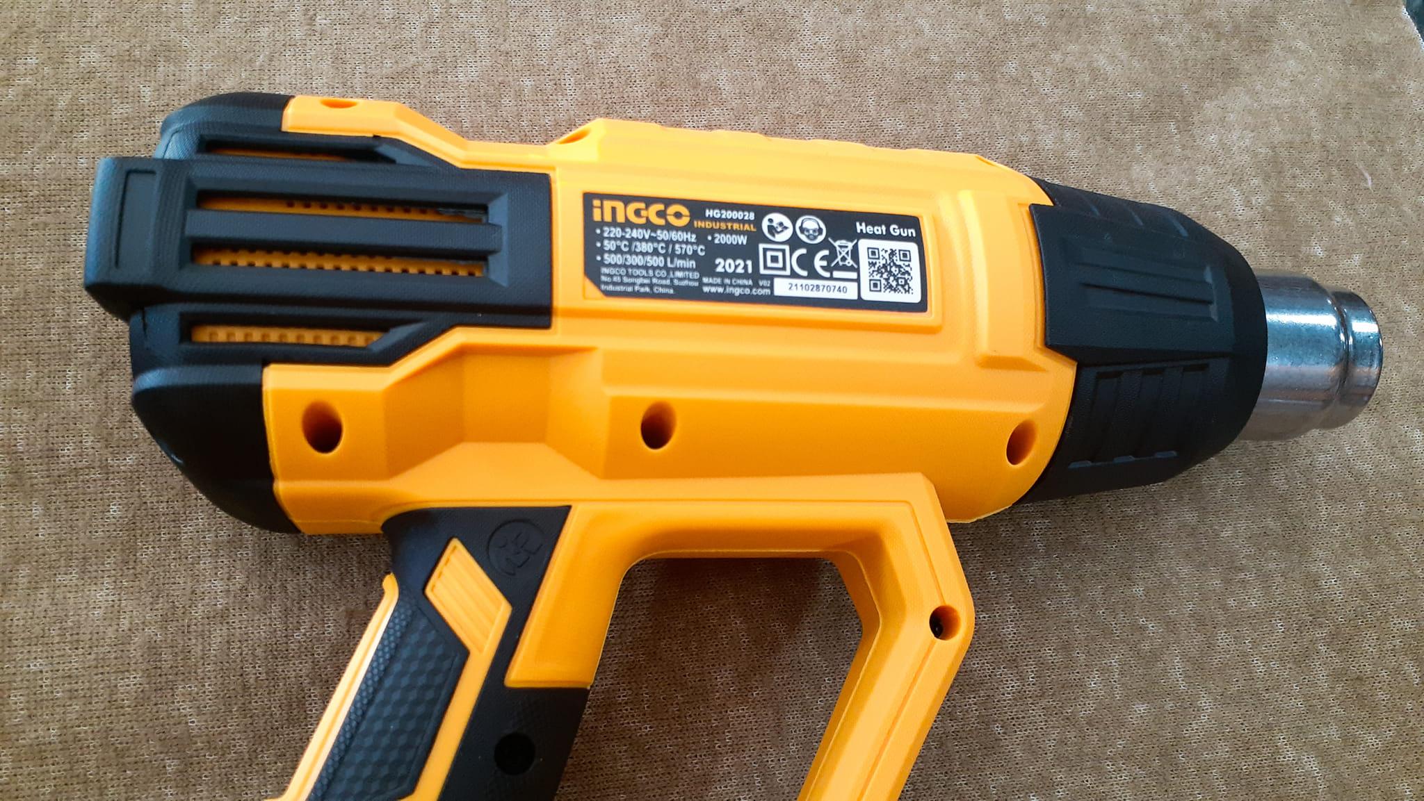 Máy thổi hơi nóng INGCO HG200028 được tặng kèm bộ phụ kiện như hình, mạnh mẽ với công suất 2000W, là 1 trong những máy thổi nhiệt chất lượng nhưng có mức giá rẻ, luôn nằm trong danh sách bán chạy. Ưu điểm của model này là được làm từ chất liệu nhựa ABS nên sở hữu độ rắn chắc cao, chịu nhiệt tốt, chống chịu được sự mài mòn trong suốt quá trình sử dụng, chống biến dạng khi bị tác động mạnh giúp bạn yên tâm sử dụng sản phẩm trong một thời gian dài mà không lo các vấn đề hư hỏng thường gặp như các loại máy thổi hơi nóng thông thường khác