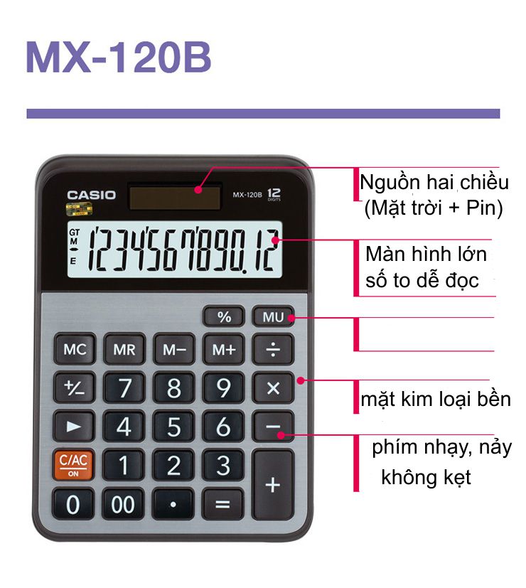 Cách phân biệt Casio thật giả qua con tem BitexMáy Tính Để Bàn Casio MX-120BMáy Tính Để Bàn Casio MX-120B là sản phẩm tiện ích, không thể thiếu trong việc tính toán hàng ngày. Máy tính có màn hình ...