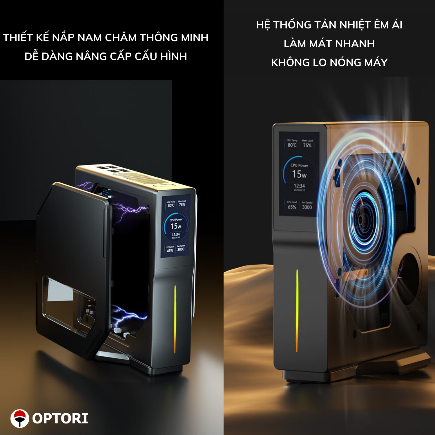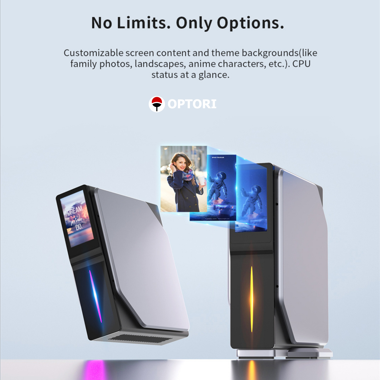 Đặc biệt Mini PC JK01 thiết kế giao diện màn hình LCD cho phép tùy chỉnh theme, cùng LED RGB đẹp mắt trên thân máy, giúp không gian làm việc của bạn trở nên thật sống động và nổi bật