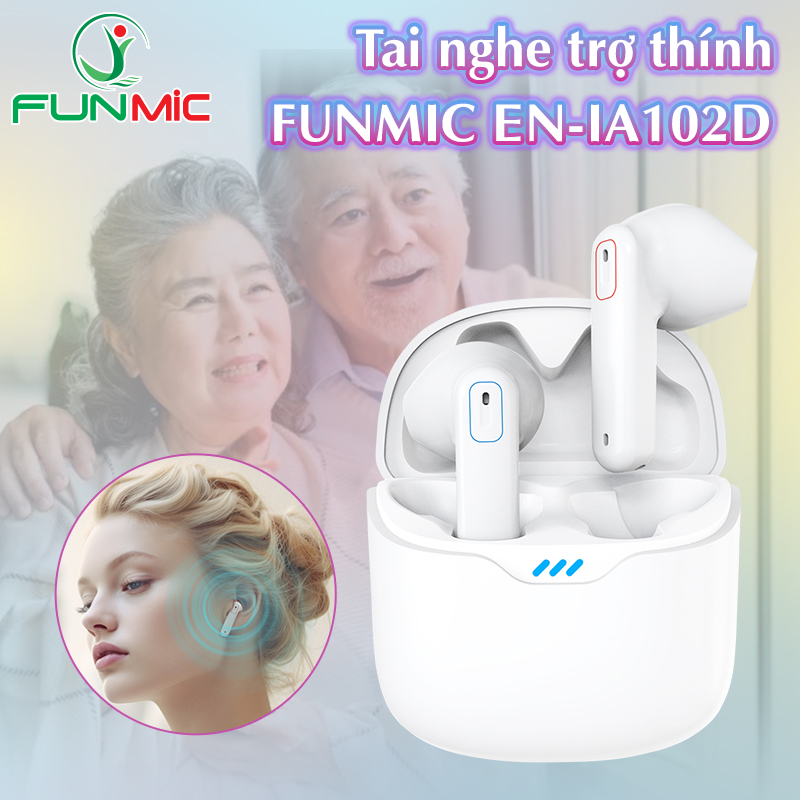 Mua tại TiktokMáy trợ thính Funmic EN-IA102D - Kết nối Bluetooth Máy trợ thính Funmic EN-IA102D phù hợp cho người lớn bị mất thính lực từ nhẹ đến trung bình. Máy hỗ trợ người dùng trong các cuộc trò chuyện hàng ngày, xem ti vi, nghe điện thoại.. rõ ràng 90-95% như người thường. Máy nhỏ gọn tinh tế tính thẩm mỹ cao, sạc pin tiện dụng, chất âm tốt... nên được nhiều người yêu thích. Sản phẩm là lựa chọn hoàn hảo cho những ai cần cải thiện khả năng nghe mà vẫn muốn giữ sự tiện lợi và thẩm mỹ cao. Đặc điểm nổi bật máy trợ thính Funmic EN-IA102D: