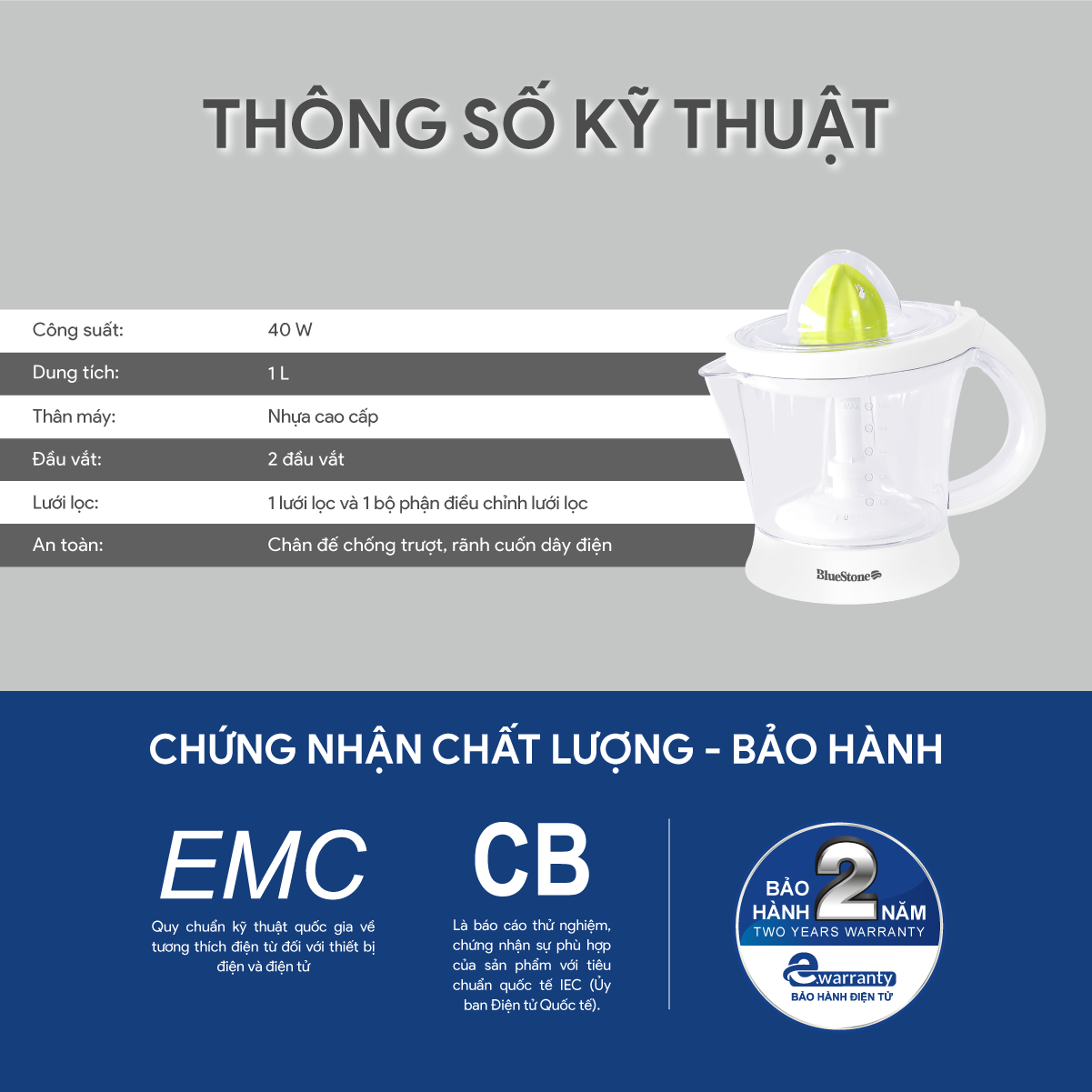 ✨Máy Vắt Cam BlueStone CJB-1129 1 Lít 40W - Hàng Chính Hãng