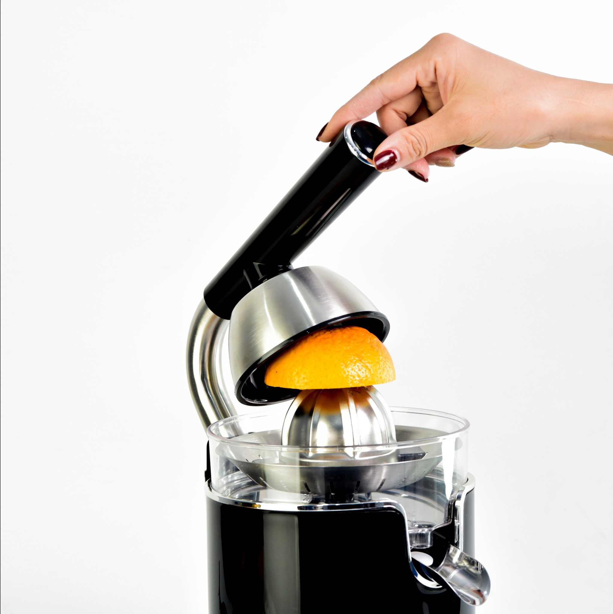 - Thiết Kế Tiện Lợi và Dễ Sử Dụng Máy được trang bị tay cầm chắc chắn, giúp bạn dễ dàng ép cam mà không cần dùng quá nhiều lực. Bên cạnh đó, vòi rót bằng inox với cơ chế đóng mở linh hoạt giúp việc rót nước ép trở nên thuận tiện và không gây đổ tràn