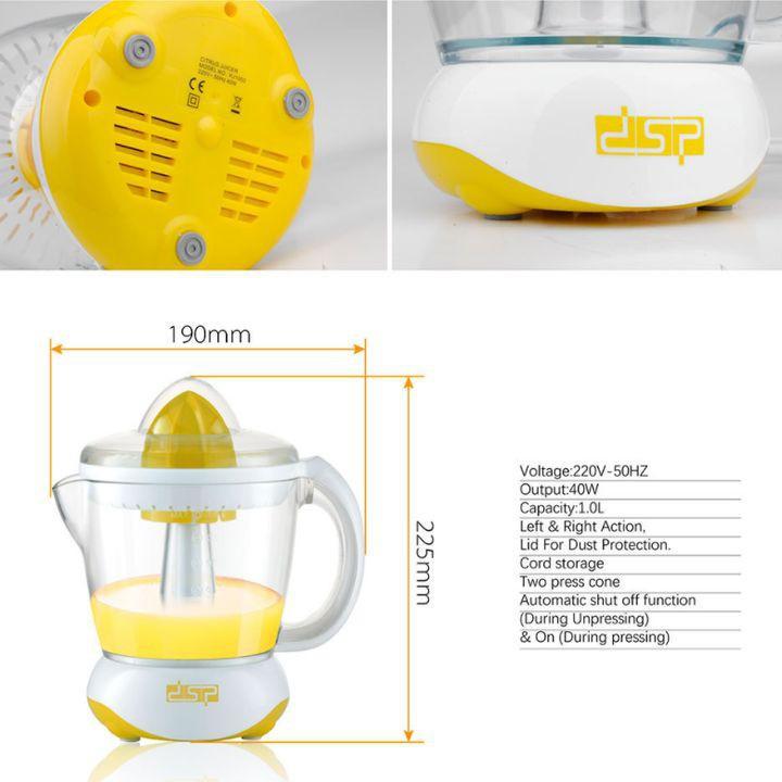 Máy vắt cam gia đình DSP công suất 40W - Dung tích bình 1 lít ước trái cây thơm ngon, bổ dưỡng mà còn góp phần tô điểm cho không gian bếp thêm tiện nghi,