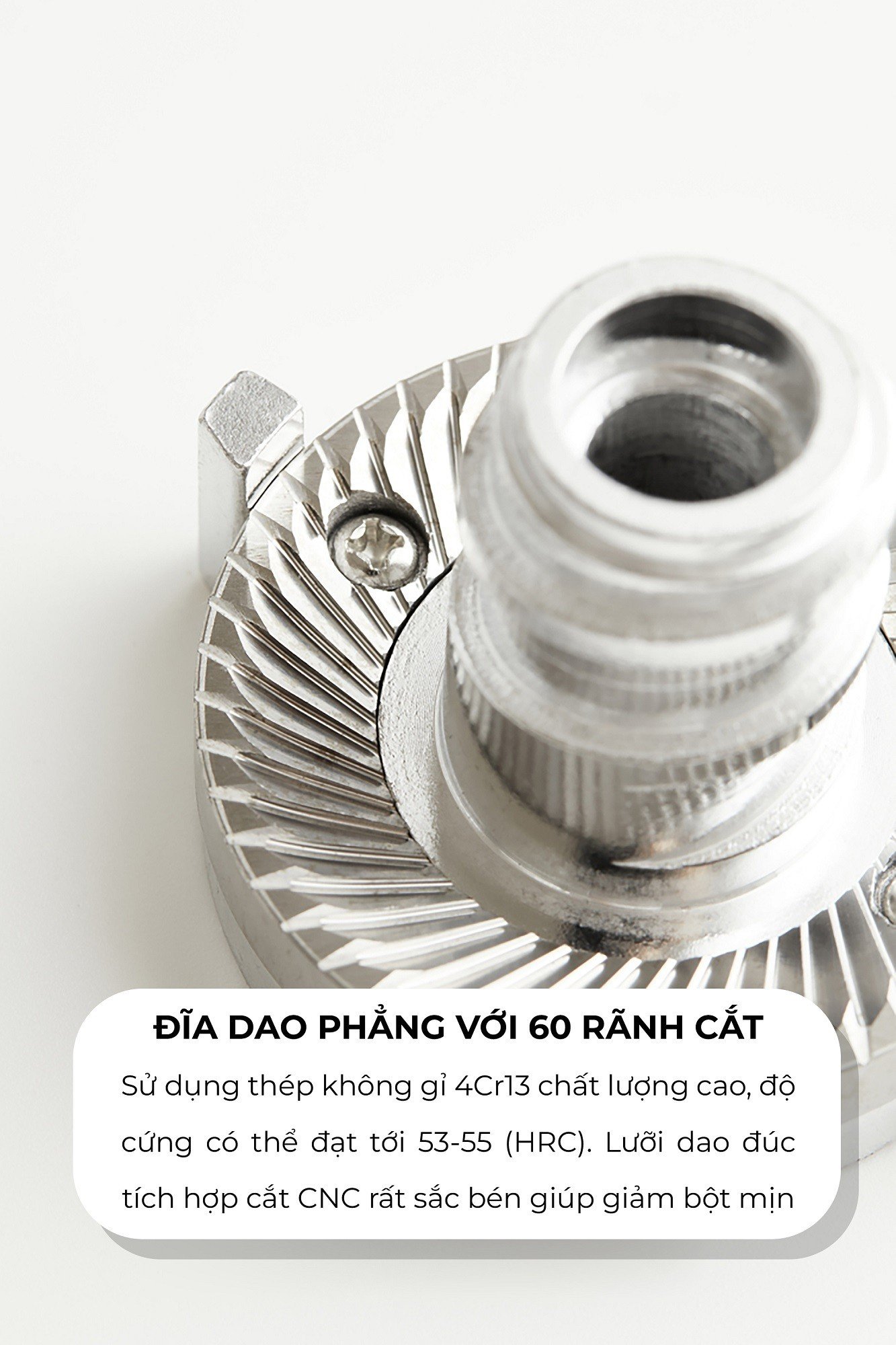 Dễ dàng vệ sinh: Bảo dưỡng và thay thế đĩa xay nếu có nhu cầu bởi linh kiện này hoàn toàn tháo rời được.