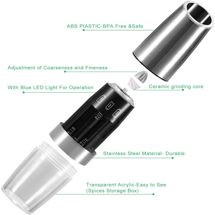 Máy xay hạt tiêu và gia vị GB-5089 - Thiết kế đặc biệt của trọng lực được kích hoạt và tự động bật khi bạn nghiêng nó để gia vị thức ăn của bạn và