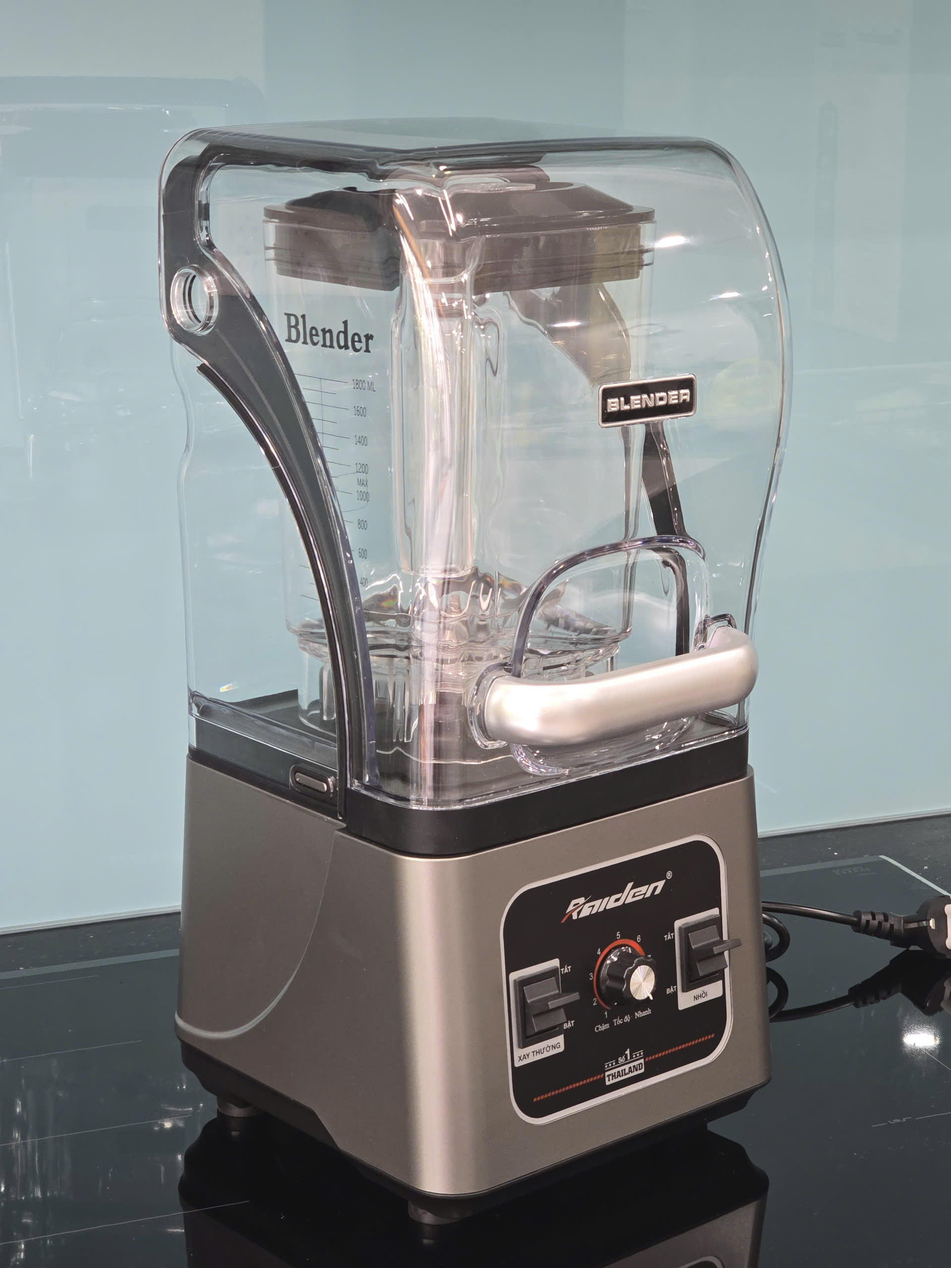Máy xay sinh tố công nghiệp 2680W Raiden cối nhựa kháng vỡ 3L, chống ồn khi xay BH 24 Tháng -Đặc biệt có cối chống ồn bên ngoài. - Xay đá -
