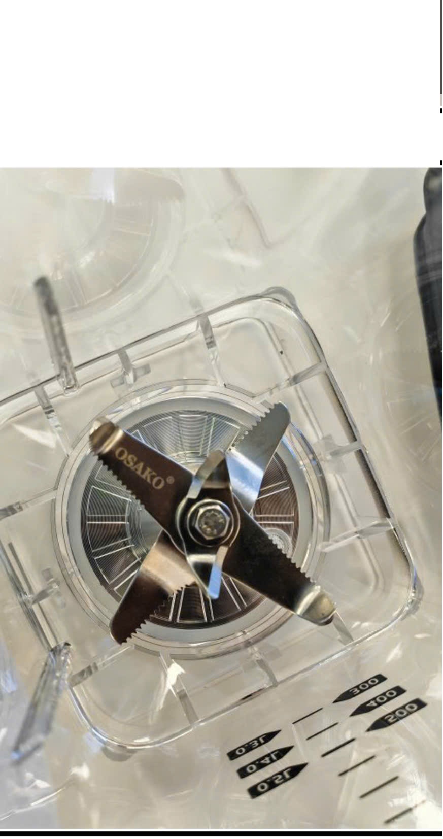 Bộ dao 6 lưỡi thép không gỉ chuyên dụng đa chức năng Phát triển theo hướng xay đa chức năng trong cùng một sản phẩm, máy xay sinh tố OSAKO OS-1500 sử dụng bộ dao gồm 6 lưỡi bao gồm: Lưỡi dao răng cưa, lưỡi dao sắc. Bộ lưỡi dao này có thể xay được tất cả các thực phẩm từ thịt cá, rau củ, các loại hạt ngủ cốc cứng cho đến sinh tố, đá lạnh mà không gặp phải bất kỳ vấn đề nào Lưỡi dao sử dụng chất liệu inox 304 chuyên dụng siêu cứng, rất khó bị mài mòn bởi thực phẩm, cho dù những vật cứng như chén sứ khi xay cũng không để lại vết sứt mẻ nào trên lưỡi dao