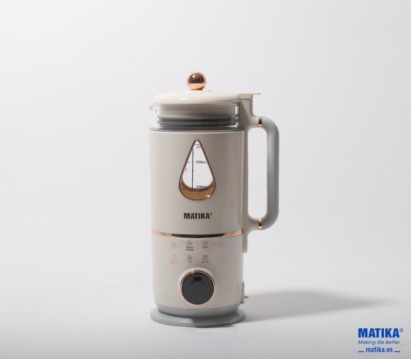 - Vệ sinh: Cho một ít nước vào giữa các đường trên và dưới. Kết nối với nguồn điện, chạm vào phím chức năng để chọn chức năng làm sạch. Sau 2 phút, máy sẽ hoàn thành chương trình làm sạch và tự động ngắt. NẤU NHANH HƠN, MẠNH HƠN NHỜ CÔNG SUẤT LỚN Máy xay sữa hạt đa năng MTK-3150 có công suất nấu 500W, công suất xay 250W – Công suất mạnh nhất trong dòng máy xay/nấu sữa hạt đa năng có trên thị trường hiện nay. Công suất mạnh nhưng không gây ồn, đáp ứng được các tiêu chí “nhanh – tiện – hiệu quả”. Sản phẩm đáp ứng được tốt những yêu cầu của người dùng: tiết kiệm thời gian, chi phí. LƯỠI DAO SẮC BÉN, XAY NHUYỄN MỌI NGUYÊN LIỆU Máy xay sữa hạt đa năng Matika MTK-3150 được sản xuất với thiết kế lưỡi dao bằng inox 304 sắc bén, xoay 360 độ có khả năng xay nhuyễn mọi thực phẩm từ mềm đến cứng hiệu quả, nhanh chóng. Chính vì vậy, sẽ giúp người dùng tạo ra những ly sữa hạt thơm ngon, sánh mịn, giàu chất dinh dưỡng mà không cần xay lọc nhiều lần. CHẤT LIỆU AN TOÀN CHO SỨC KHỎE NGƯỜI DÙNG Lưỡi dao bằng inox 304 an toàn cho sức khỏe người dùng. Thân cối thủy tinh sáng bóng cao cấp. Toàn bộ các bộ phận đều được sử dụng vật liệu an toàn tuyệt đối cho sức khỏe người dùng dù ở nhiệt độ cao. Tay cầm bọc silicon êm ái, chống nóng, bo tròn dễ thao tác. Khe tản nhiệt lớn giúp làm mát động cơ, đế chống trơn silicon giảm độ ồn và cho máy hoạt động chắc chắn, bền bỉ không rung lắc. Miệng rót dễ dàng, không gây vương đổ khi cho ra cốc hoặc bát. XAY ÊM, NẤU ĐƠN GIẢN VỚI BẢNG ĐIỀU KHIỂN THÔNG MINH Mẫu thiết kế mới của Matika có cơ chế hoạt động vô cùng đơn giản nhờ sự kết hợp giữa mún xoay và đèn led tại các nút chức năng. Bạn chỉ cần xoay điều chỉnh đến chức năng cần sử dụng. Các chức năng đều hiển thị bằng tiếng Việt do đó người dùng dễ dàng chọn được chương trình mình mong muốn.Máy xay sữa hạt đa năng Matika MTK-3150 với dung tích 800ml phù hợp với nhu cầu cho gia đình 3-5 người, sử dụng linh hoạt mọi lúc mọi nơi. Máy xay sữa hạt đa năng Matika MTK-3150 là dòng sản phẩm đáp ứng đủ các tiêu chí “chất lượng – an toàn – giá tốt – tiện lợi – nhỏ gọn – đẹp sang” phù hợp với mọi nhà. Hãy liên hệ ngay với Matika để sở hữu sản phẩm tốt này ngay hôm nay. THÔNG SỐ KỸ THUẬT