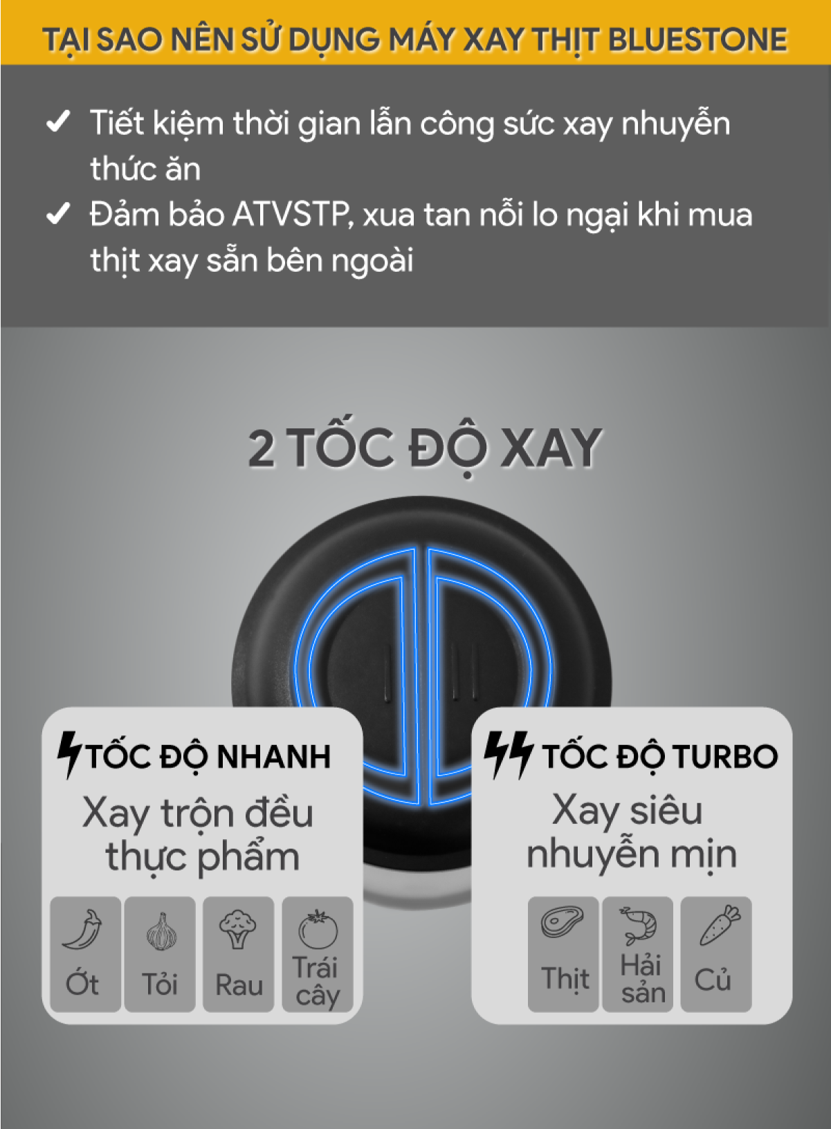 Mua tại TiktokMáy xay thịt BlueStone giúp người nội trợ hiện đại chế biến món thịt xay nhuyễn mịn tại nhà, an toàn sức khỏe cho cả gia đình nhờ việc chủ động lựa chọn loại thịt, nắm rõ thời gian xay và sử dụng thành phẩm. Sử dụng máy xay thịt còn giúp tiết kiệm thời gian và công sức thay vì phải băm thịt bằng tay mất thời gian, đồng thời thiết kế và chất liệu máy xay thịt cực kỳ dễ vệ sinh.