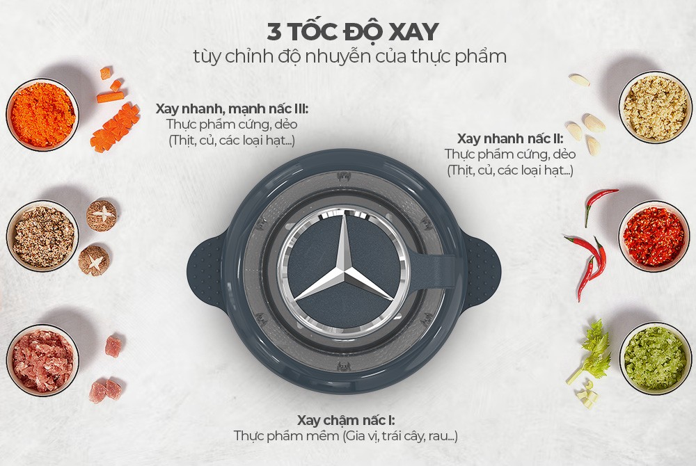 3 tốc độ xay nhuyễn, phù hợp mọi loại thực phẩm