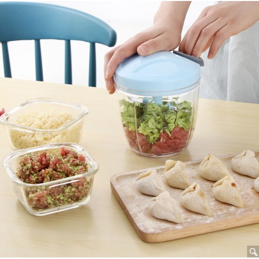 Cắt, xay nhuyễn đối với các loại hành tỏi, ớt , rau, thảo mộc, hành tây, các loại hạt...bằng tay chỉ với thao tác kéo dây cắt cực dễ và tiện Các mẹ làm đồ