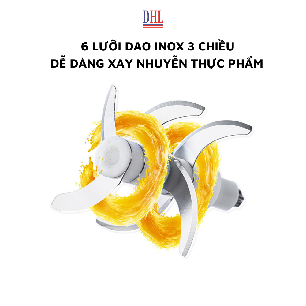 Xay nhuyễn các loại rau, củ và quả nhanh chóng. Máy xay sạc điện, tiện lợi, có thể sử dụng ở bất kỳ nơi đâu.  Máy được trang bị 4 lưỡi dao làm bằng thép