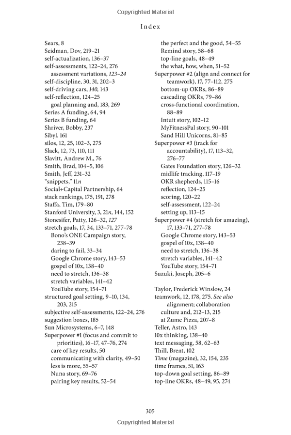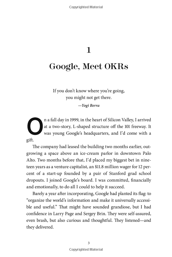 INSTANT NEW YORK TIMES BESTSELLER 'I'd recommend John's book for anyone interested in becoming a better manager', Bill Gates 'Management  What Matters is a must read for anyone motivated to improve their organization' - Former Vice President Al Gore, chairman of the Climate Reality Project 'Measure What Matters shows how any organization or team can aim high, move fast, and excel' , Sheryl Sandberg, Facebook COO and founder of L and OptionB 'Measure What Matters deserves to be fully embraced by every person responsible for performance in any walk of life' - Jim Collins, author of Good to Great 'In this indispensable book, the most important venture capitalist of our era reveals a key to business innovation and success - Walter Isaacson, author of Steve Jobs and The Innovators 'Measure What Matters takes you behind the scenes for the creation of Intel's powerful OKR system - one of Andy Grove's finest legacies' - Gordon Moore, cofounder and former chairman of Inte -------- The revolutionary movement behind the explosive growth of Intel, Google, Amazon and Uber. With a foreword by Larry Page, and contributions from Bono and Bill Gates. Measure What Matters is about using Objectives and Key Results (OKRs), a revolutionary approach to goal-setting, to make tough choices in business. In 1999, legendary venture capitalist John Doerr invested nearly $12 million in a startup that had amazing technology, entrepreneurial energy and sky-high ambitions, but no real business plan. Doerr introduced the founders to OKRs and with them at the foundation of their management, the startup grew from forty employees to more than 70,000 with a market cap exceeding $600 billion. The startup was Google. Since then Doerr has introduced OKRs to more than fifty companies, helping tech giants and charities exceed all expectations. In the OKR model objectives define what we seek to achieve and key results are how those top priority goals will be attained. OKRs focus effort, foster coordination and enhance workplace satisfaction. They surface an organization's most important work as everyone's goals from entry-level to CEO are transparent to the entire institution. In Measure What Matters, Doerr shares a broad range of first-person, behind-the-scenes case studies, with narrators including Bono and Bill Gates, to demonstrate the focus, agility, and explosive growth that OKRs have spurred at so many great organizations. This book will show you how to collect timely, relevant data to track progress - to measure what matters. It will help any organization or team aim high, move fast, and excel .