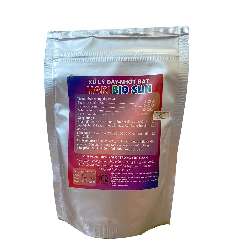 ✨Men vi sinh phân hủy đáy, làm trong nước, xử lý nước, ức chế tảo, xử lý nhớt bạt, hạ khí độc Haki Bio Sun đậm đặc gói 250gr dùng 2000 khối nước - hàng chính hãng