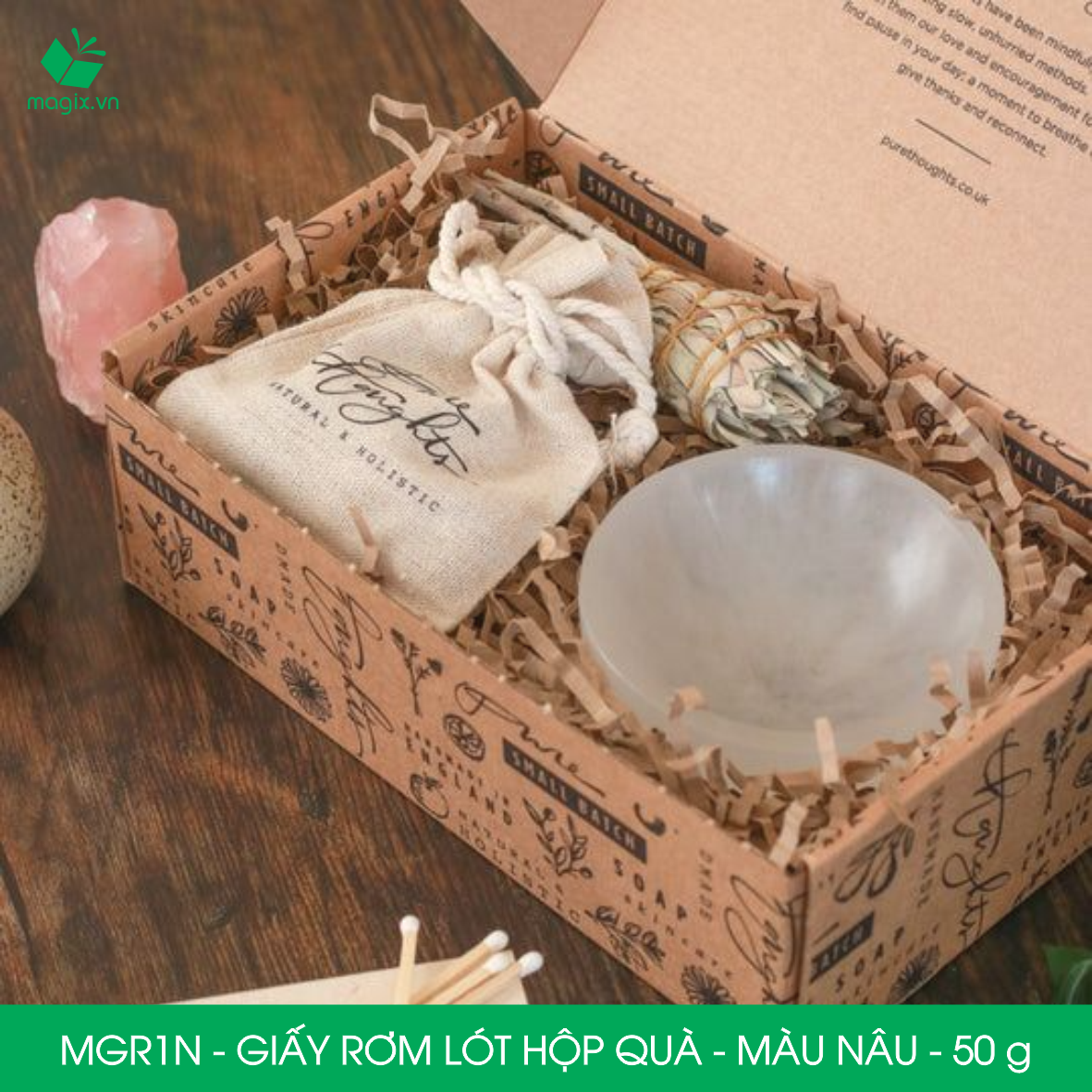 ✨MGR1N - 100g Giấy rơm lót hộp quà màu nâu - Giấy sợi rơm trang trí - Giấy vụn chống sốc