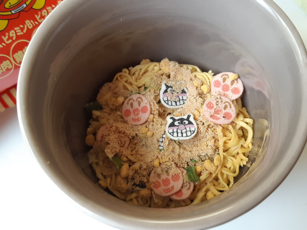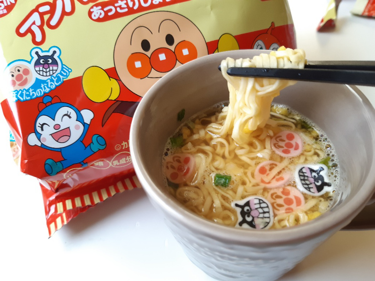 - Điều đặc biệt là bé sẽ thích thú với khuôn mặt nhân vật Anpaman có trong ly mỳ, giúp bé biếng ăn sẽ ăn được nhiều hơn.