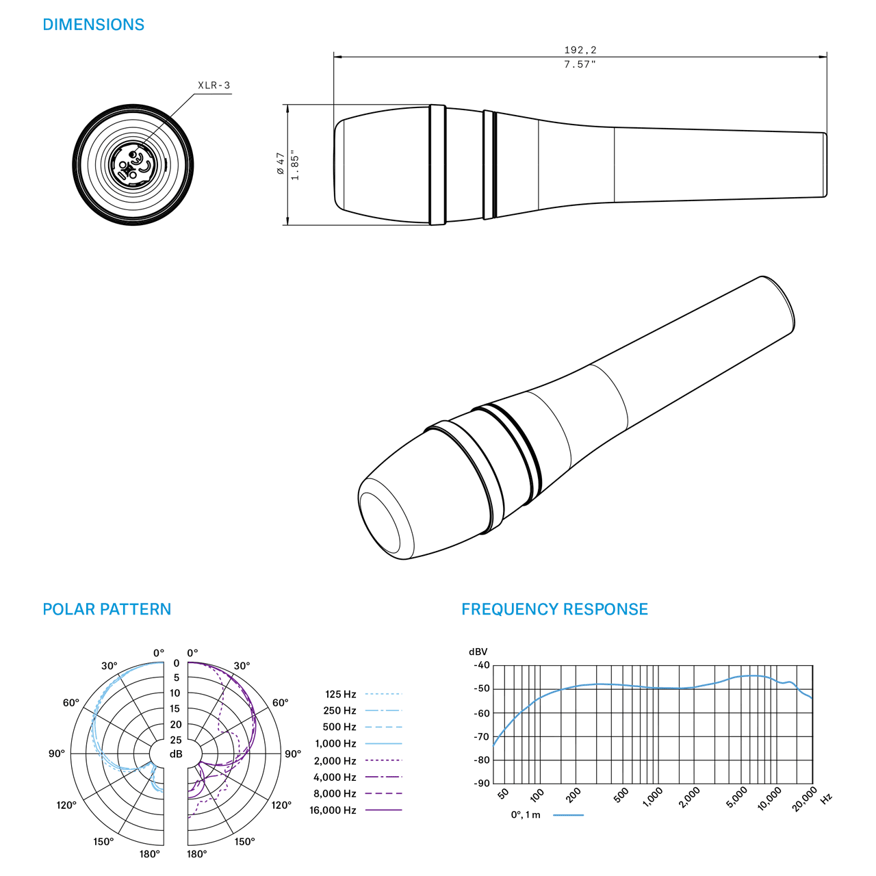 THÔNG SỐ KỸ THUẬT: Loại Mic: Dynamic - Hướng Thu: Supercardioid - Đáp ứng tần số: 40 Hz - 16 kHz - Công tắc: Bật/Tắt - Kết nối: XLR-3 - Trở Kháng: 350 Ω -